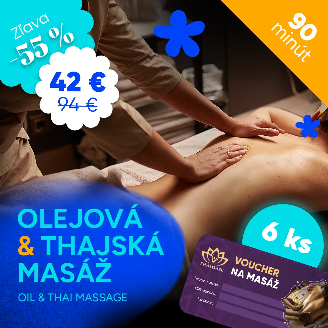AKCIA - 6x 60 min. olejová alebo thajská masáž 408,00 € Original price was: 408,00 €.180,00 €Current price is: 180,00 €.